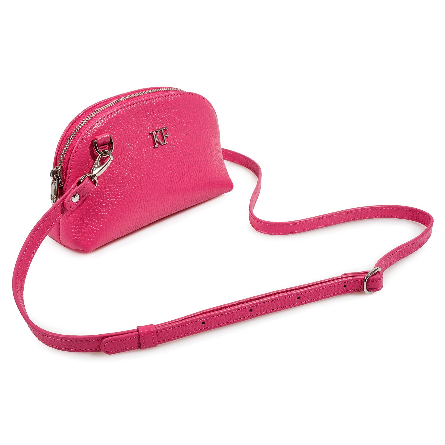 Fuchsia genuine leather woman crossbody bag from ukrainian designer Katerina Fox. Fashionable and elegant modern bag KF for bright girls and women. This bag is able to attract attention and highlight your exquisite taste. The internal space of a cosmetic bag is equipped with one spacious compartment and one patch-pocket. The bag is closed with a zipper. The kit also includes a storage bag. The kit also includes a storage bag.