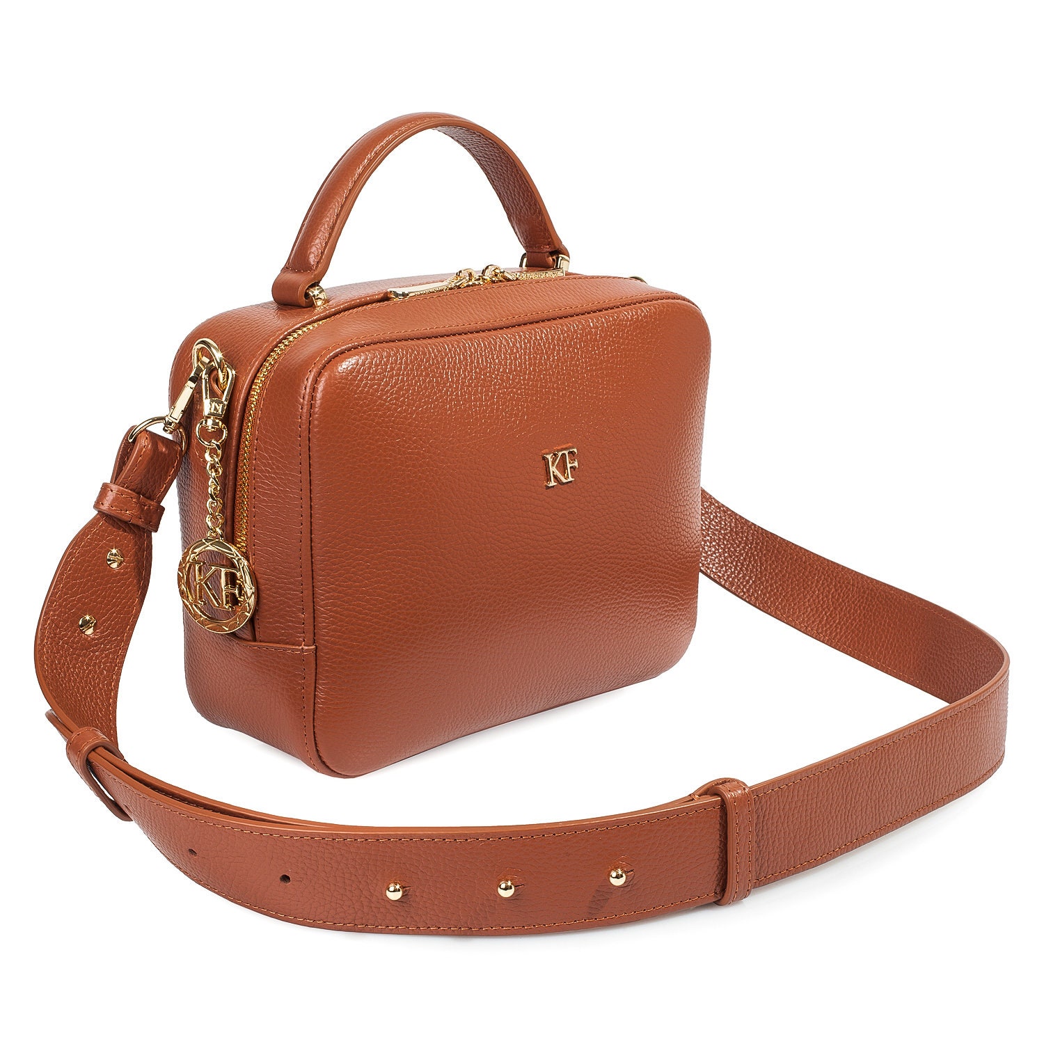 Ginger genuine leather woman shoulder bag from Ukrainian designer Katerina Fox. Fashionable and elegant modern bag KF for bright girls and women. This bag is able to attract attention and highlight your exquisite taste. The internal space of a bag is equipped with one spacious compartment and one zipper pocket. The bag is closed with a zipper. The length of the strap is adjustable. The kit also includes a storage bag.