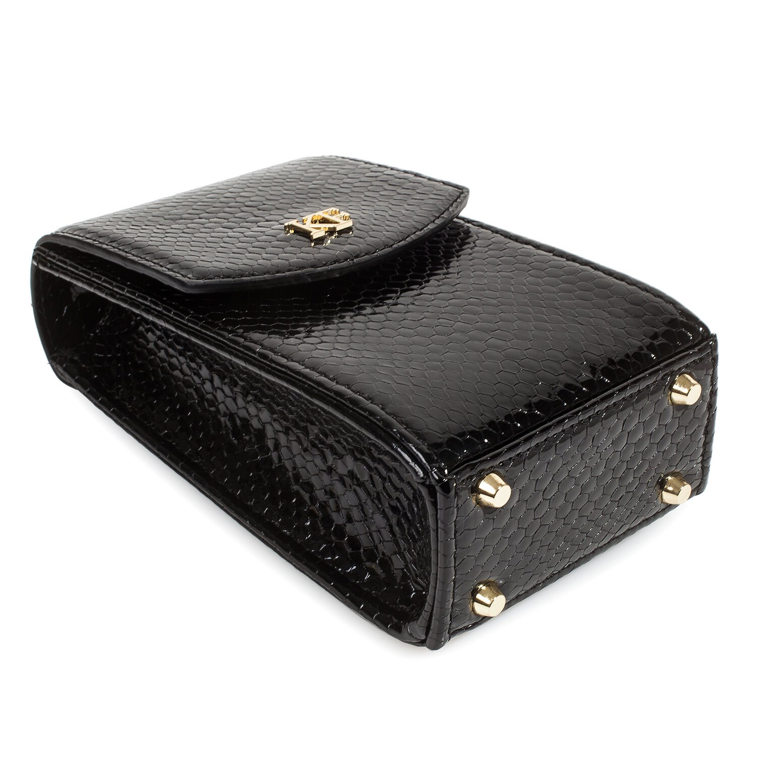 Black patent genuine leather woman crossbody bag from Ukrainian designer Katerina Fox. Fashionable and elegant modern bag KF for bright girls and women. This bag is able to attract attention and highlight your exquisite tastes. The internal space of a bag is equipped with one spacious compartment, four patch pockets for cards. The bag is closed on the button-magnet. The kit also includes a storage bag.
