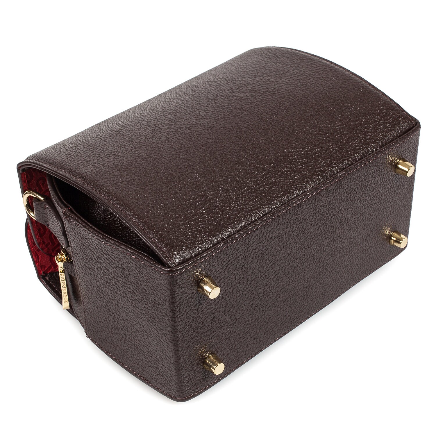 Brown genuine leather handbag from Ukrainian designer Katerina Fox. This model is designed for women who appreciate the sleek design combined with functionality and comfort. High-quality and reliable hardware ensures long service bags. The internal space of a bag is equipped with three spacious compartments and one patch pocket. The bag is closed with a clasp. The bottom of the bag is protected with metal legs. There is a long handle that allows you to wear the bag on the shoulder. The kit also includes a storage bag.