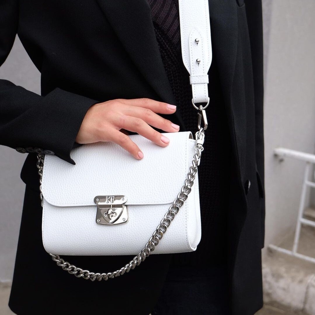 Leather Crossbody Bag, White Leather Shoulder Bag, Women's Leather Cross body Bag, Leather bag KF-3911