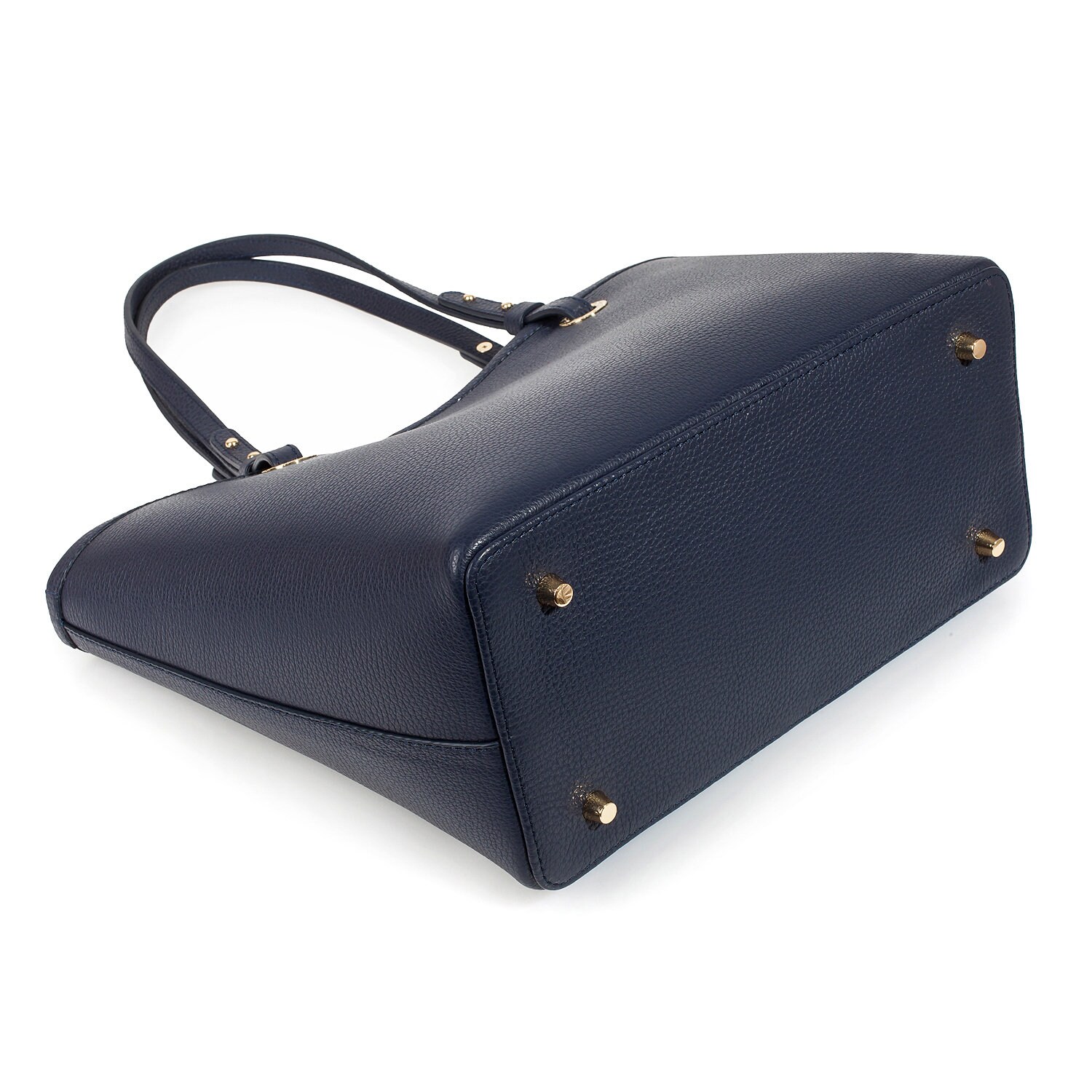Blue genuine leather tote bag from ukrainian designer Katerina Fox, which perfectly combines sleek design, functionality and comfort. Durable, comfortable, adjustable length leather handles allow you to carry the bag KF on the shoulder. All accessories for this manufacturer makes the same factory as for Michael §¬ors, Calvin Klein, DKNY and other brands. Inside the bag one large compartment that closes the bag on the button-magnet. Included is a leather purse with zipper, which can be used for keys or wallet. If you are planning to buy a luxury bag at an affordable price, this bag is the right choice!